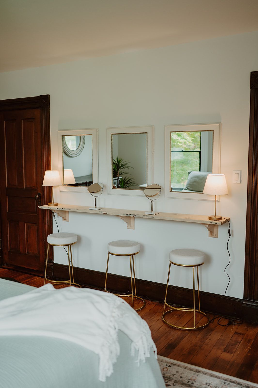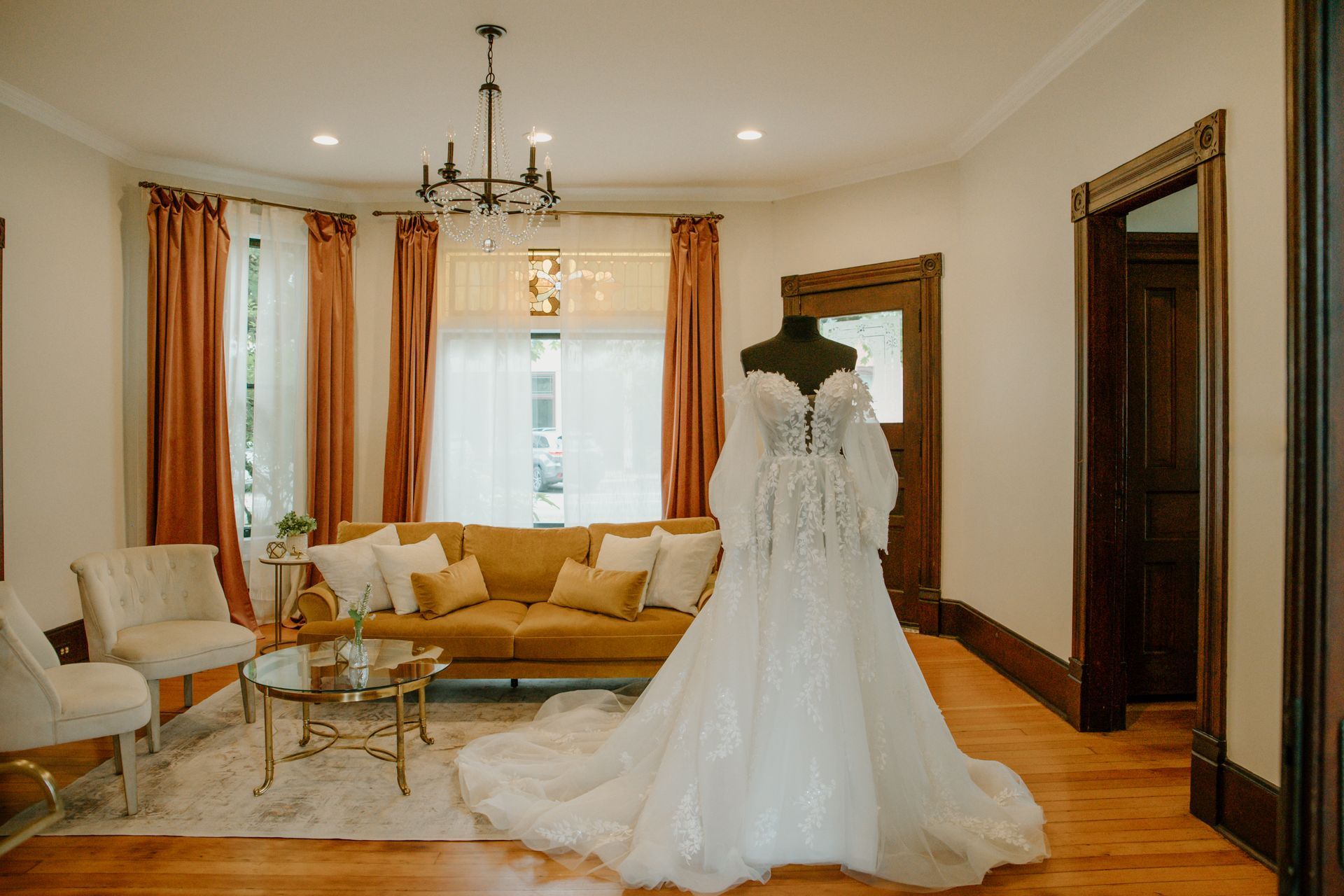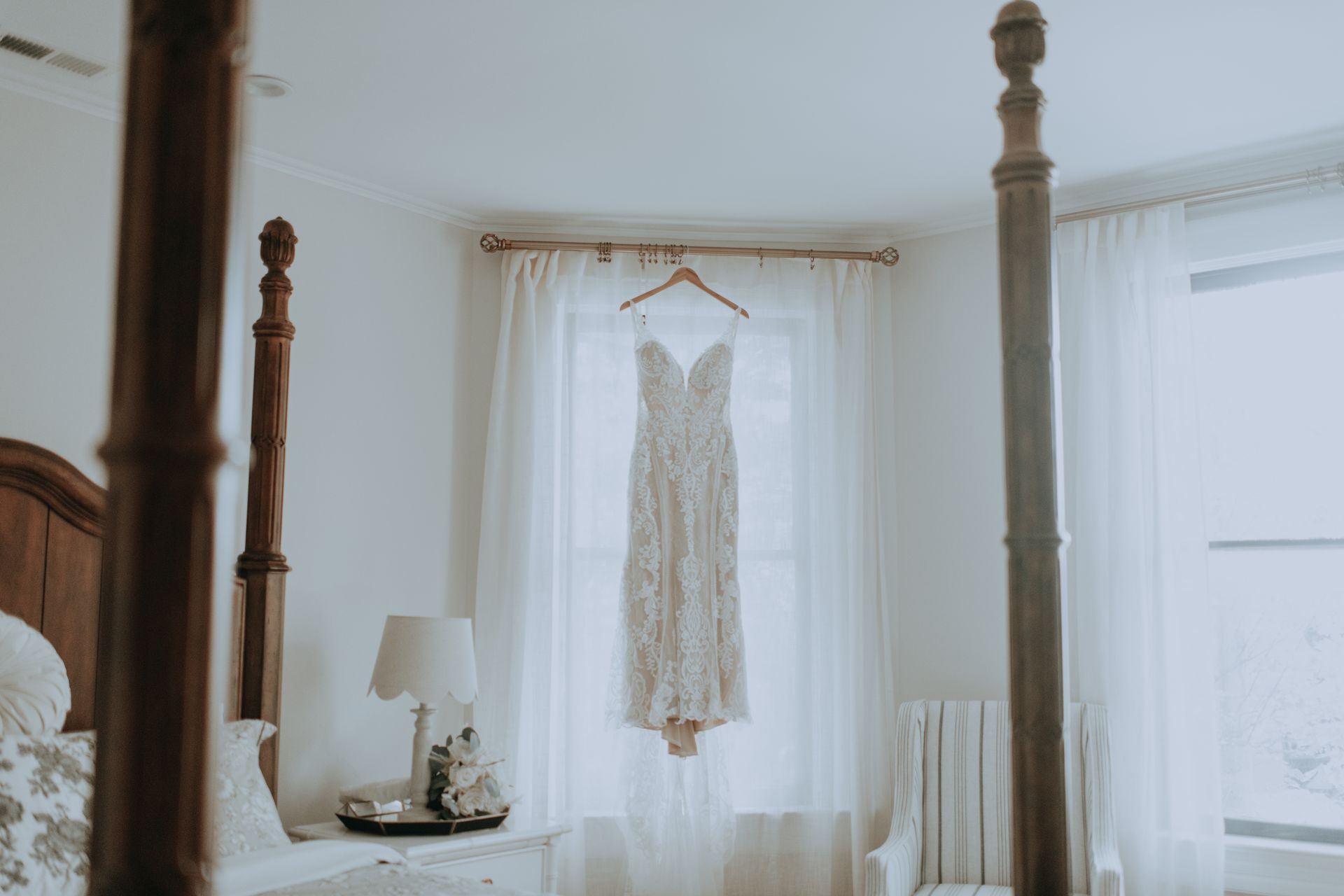 Bathed in natural light and framed by flowing drapery, this inviting space is ideal for wedding day preparations, intimate photos, or moments of calm before celebration.